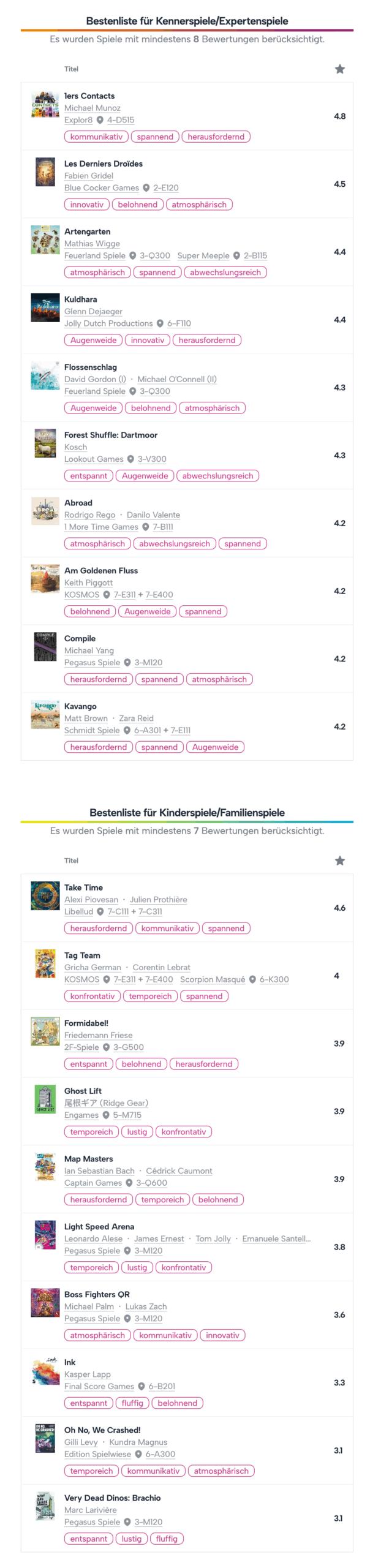 Nur Spiele mit 7 oder mehr Bewertungen sind auf die Liste gekommen.