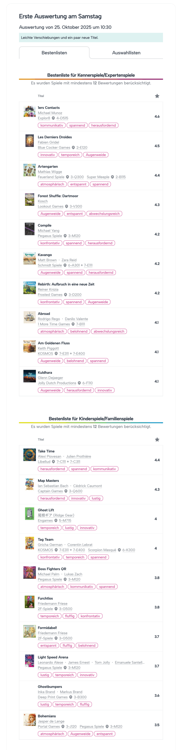 1. Auswertung am Samstag, 10:30 Uhr