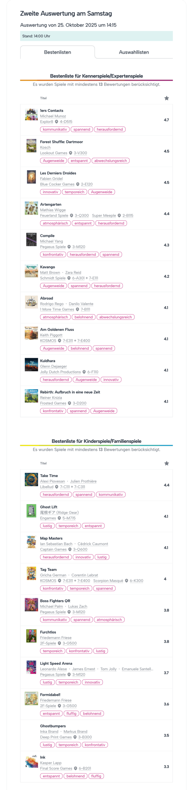 2. Auswertung am Samstag, 14:15 Uhr