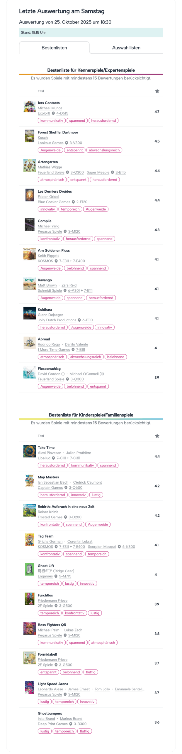 letzte Auswertung am Samstag, 18:30 Uhr